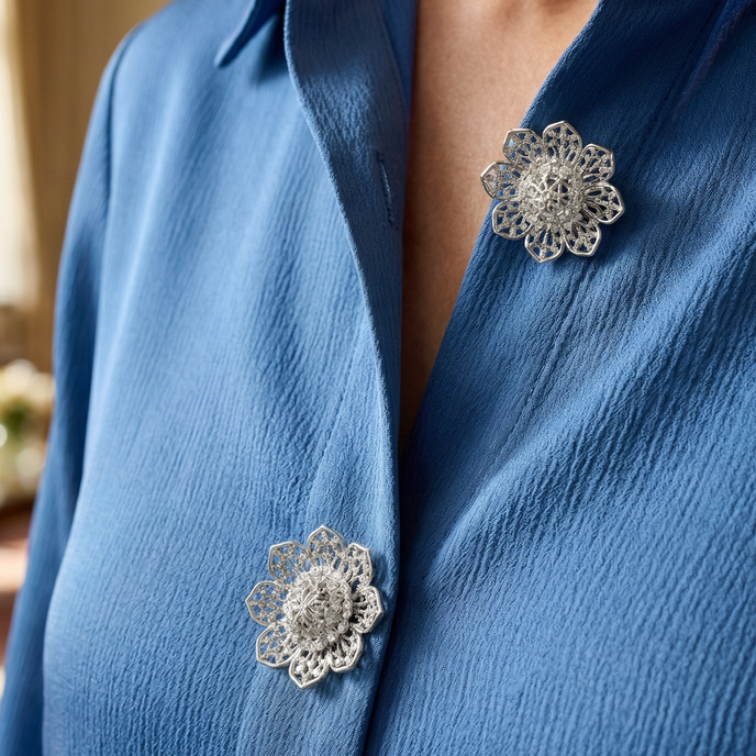 Made from high-quality materials that resist wear and fading, each piece adds a soft shimmer and a polished finish to your blouse.